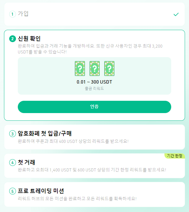 이벤트 1. 신원확인 KYC 이벤트로 최대 3,200USDT 증정 이벤트에 참여하세요 !